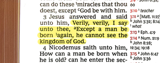 Verily, verily, I say unto thee, Except a man be born again, he cannot see the kingdom of God. — John 3:3